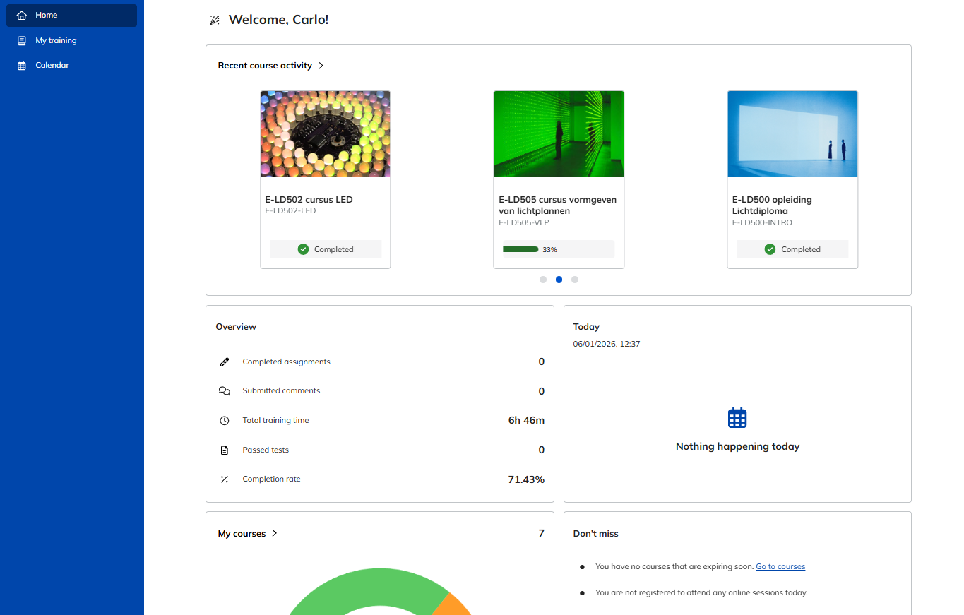 Onze leeromgeving draait op externe servers die een betrouwbaarheid van 99,9% garanderen.